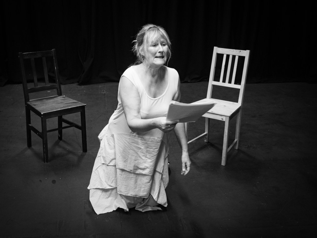 This brings me back to the poetry of the piece which communicates the other worldliness of the play. In my translation I paid particular attention to rhythm, sounds, and repetitions across the play and I often prioritized these aspects of the language when making choices about the translation into English. I also hoped that this would enable readers and actors to identify the significance of the poetic, but without it dominating their interpretation or performance. I had opportunities to explore these qualities of the play and to refine my translation at readings with students in seminars and at the Out of the Wings monthly table read. In the table read, I cast multiple actors as a way to try to identify the transitions between the encounters in the play and to experiment with how poetry creates multi-vocality in the piece. The multi-vocal quality was an aspect of the play that we explored in the 2-day rehearsal process with actors as part of the Out of the Wings Festival of play readings. I was inspired to find that the form was not limiting but opened up possibilities for playfulness and to explore the humor of the piece. At the end of the play, there is a sense that the protagonist is back on earth: her eyes become windows, she sees people surrounding her, smiling, and she smiles back. This play is also about smiling; ultimately it tells the story of one woman’s ability to laugh in the face of death.
