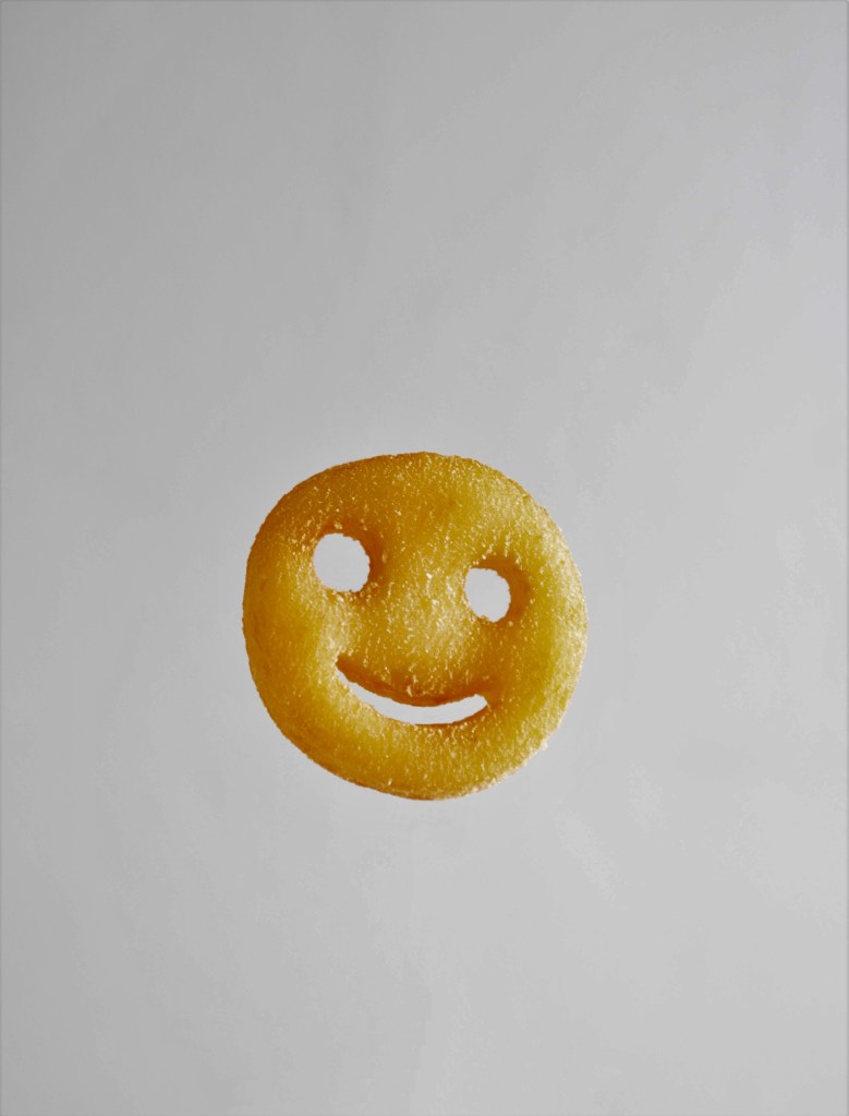 A small note too on the name of our real protagonist, the potato smile. Its official name is “McCain Smiles [mashed potato shapes]”, the final addendum depending on the local market, though they are often affectionately referred to as “smiley” or “smilies”. I have used the Sunday name in official settings, and the pet name as the colloquial. Today, they even sell potato emoticons.